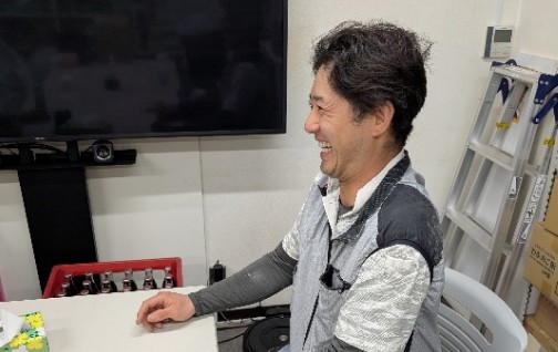 年齢や経験に関係なく、みんなフラットな関係で接してくれます。現場では安全第一ですが、休憩中は冗談を言い合ったりして和気あいあいとした雰囲気です。職人の世界ってもっとピリピリしてるのかと思ってましたが、いい意味でそのイメージが変わりました。人間関係のストレスがないので、技術に集中できるのがありがたいですね。